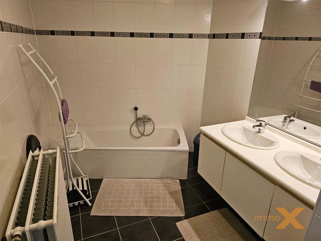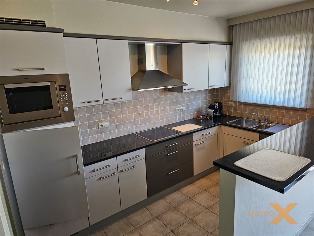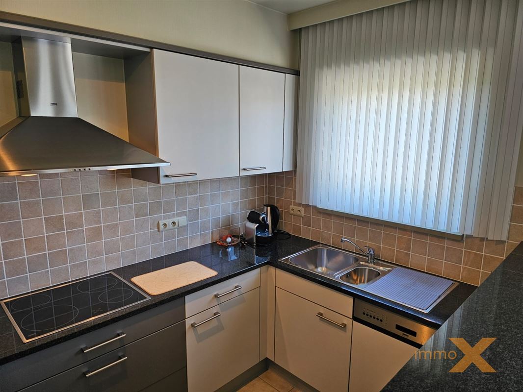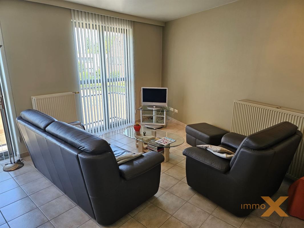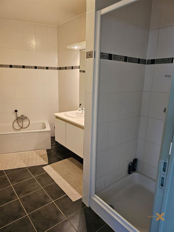 PERFECT ONDERHOUDEN INSTAPKLAAR APPARTEMENT OP EERSTE VERDIEPING MET TERRAS EN GARAGEBOX. Bestaande uit: Inkomhal, lichtrijke woonkamer/salon (schuifraam naar balkon), totaal ingerichte open keuken, berging/wasplaats, afzonderlijk toilet, badkamer (ligbad, douche en dubbel lavabomeubel), 1 grote en 1 kleine slaapkamer (toegang naar zuidgericht terrasje). Lift aanwezig, RUIME GARAGE INBEGREPEN (wagen en fietsen - elektriciteit en verlichting). Huurprijs: 925euro/mnd + provisie gemeenschap: 60 euro/mnd. Bezoek enkel mogelijk op afspraak met Immo-X via mail met vermelding van telnr.