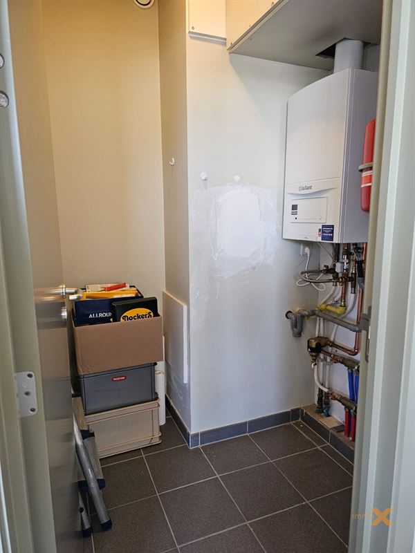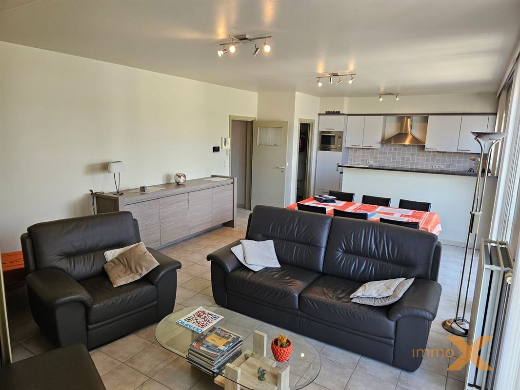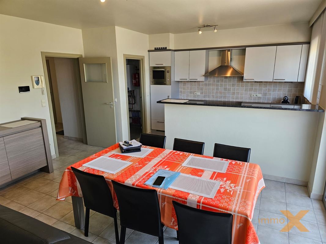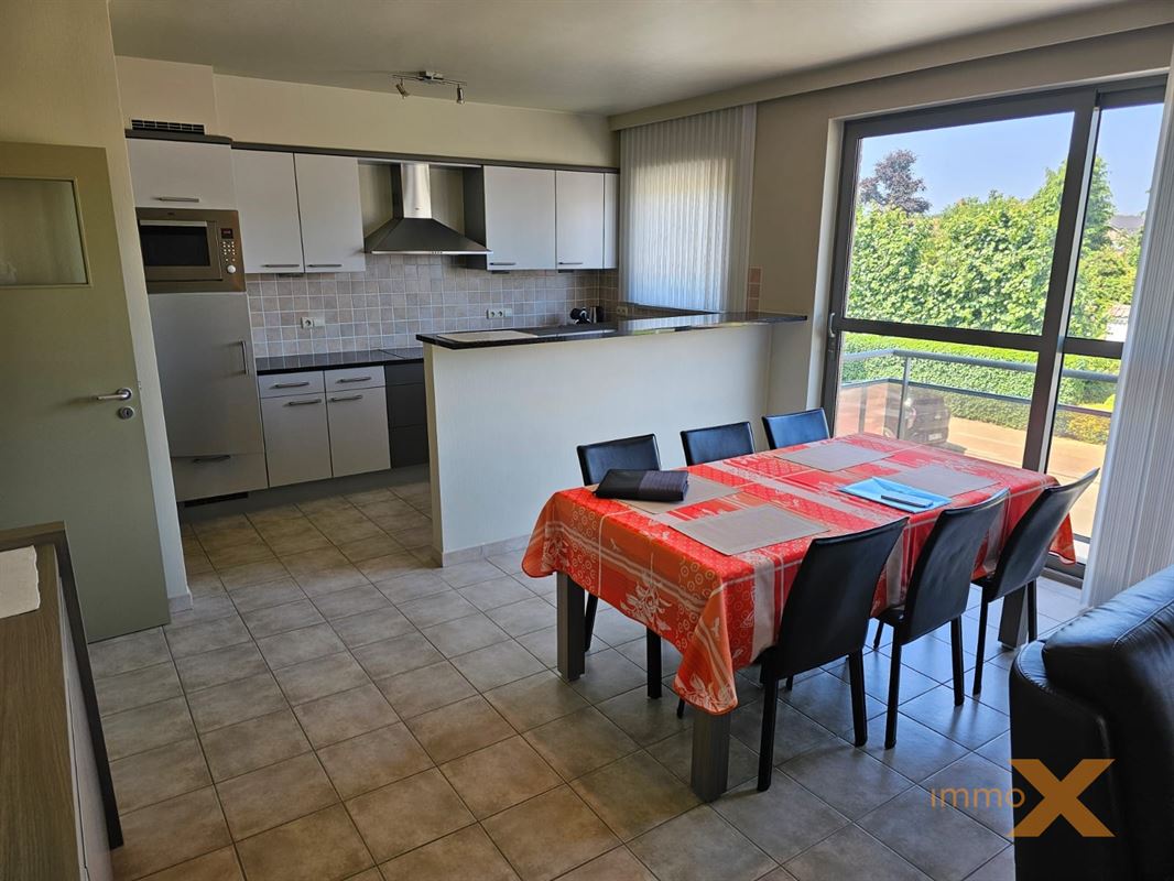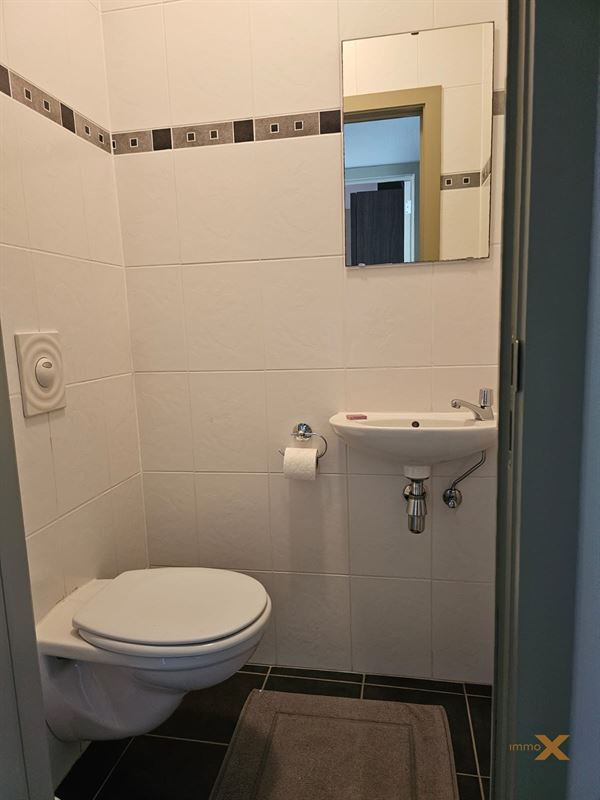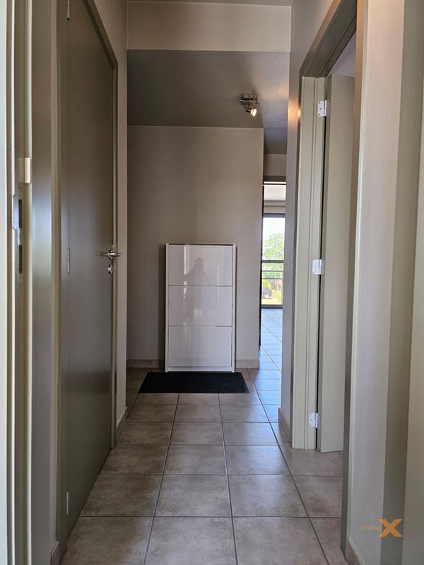 PERFECT ONDERHOUDEN INSTAPKLAAR APPARTEMENT OP EERSTE VERDIEPING MET TERRAS EN GARAGEBOX. Bestaande uit: Inkomhal, lichtrijke woonkamer/salon (schuifraam naar balkon), totaal ingerichte open keuken, berging/wasplaats, afzonderlijk toilet, badkamer (ligbad, douche en dubbel lavabomeubel), 1 grote en 1 kleine slaapkamer (toegang naar zuidgericht terrasje). Lift aanwezig, RUIME GARAGE INBEGREPEN (wagen en fietsen - elektriciteit en verlichting). Huurprijs: 925euro/mnd + provisie gemeenschap: 60 euro/mnd. Bezoek enkel mogelijk op afspraak met Immo-X via mail met vermelding van telnr.